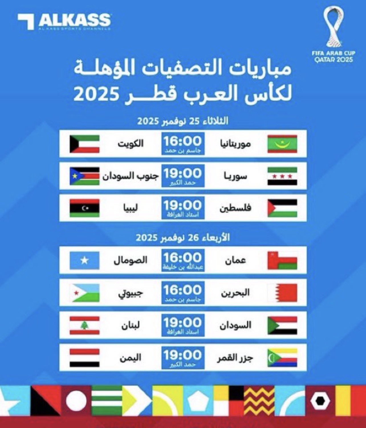مباريات الملحق المؤهل لبطولة كاس العرب قطر 2025 :