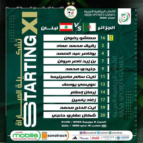وفاز تلاميذ الناخب الوطني رشيد آيت محمد بِنتيجة (2-0) على نظرائهم من لبنان، لِحساب الجولة الثالثة والأخيرة من دور المجموعات.