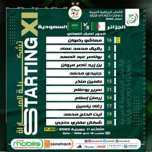 وتلقّت شباك الحارس الجزائري والقائد رضوان معاشو هدفَين سعوديَين، في الدقيقتَين الـ 18 والـ 74. مع الإشارة إلى أنه تصدّى بِنجاح لِركلة جزاء في الهدف الأوّل، لكن زملاءه المدافعين تقاعسوا في إبعاد الكرة.