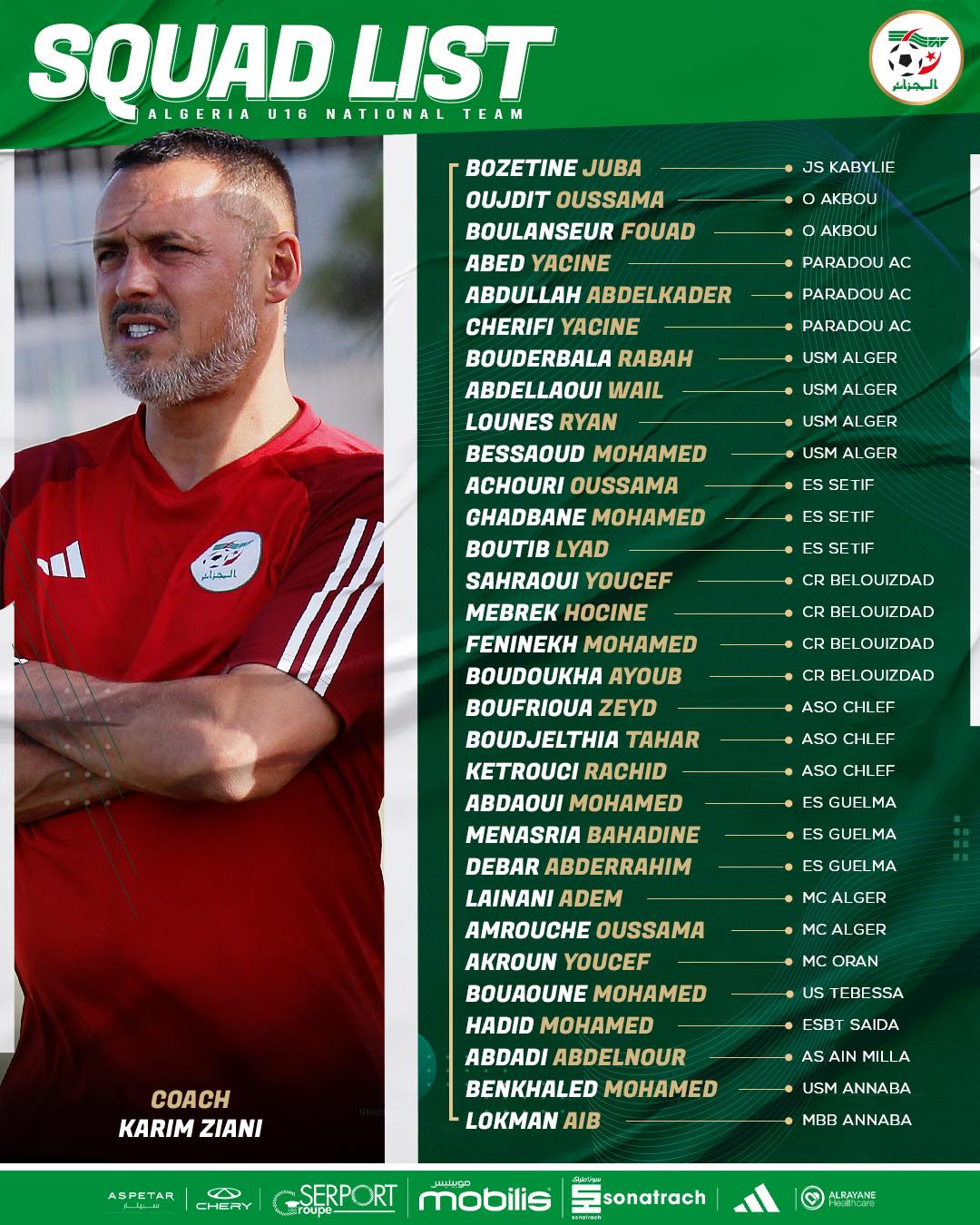 واستدعى المدرب كريم زياني قائمة تضم 31 لاعبا من مختلف الأندية والأقسام، عقب عملية معاينة أجراها خلال عدة أسابيع.