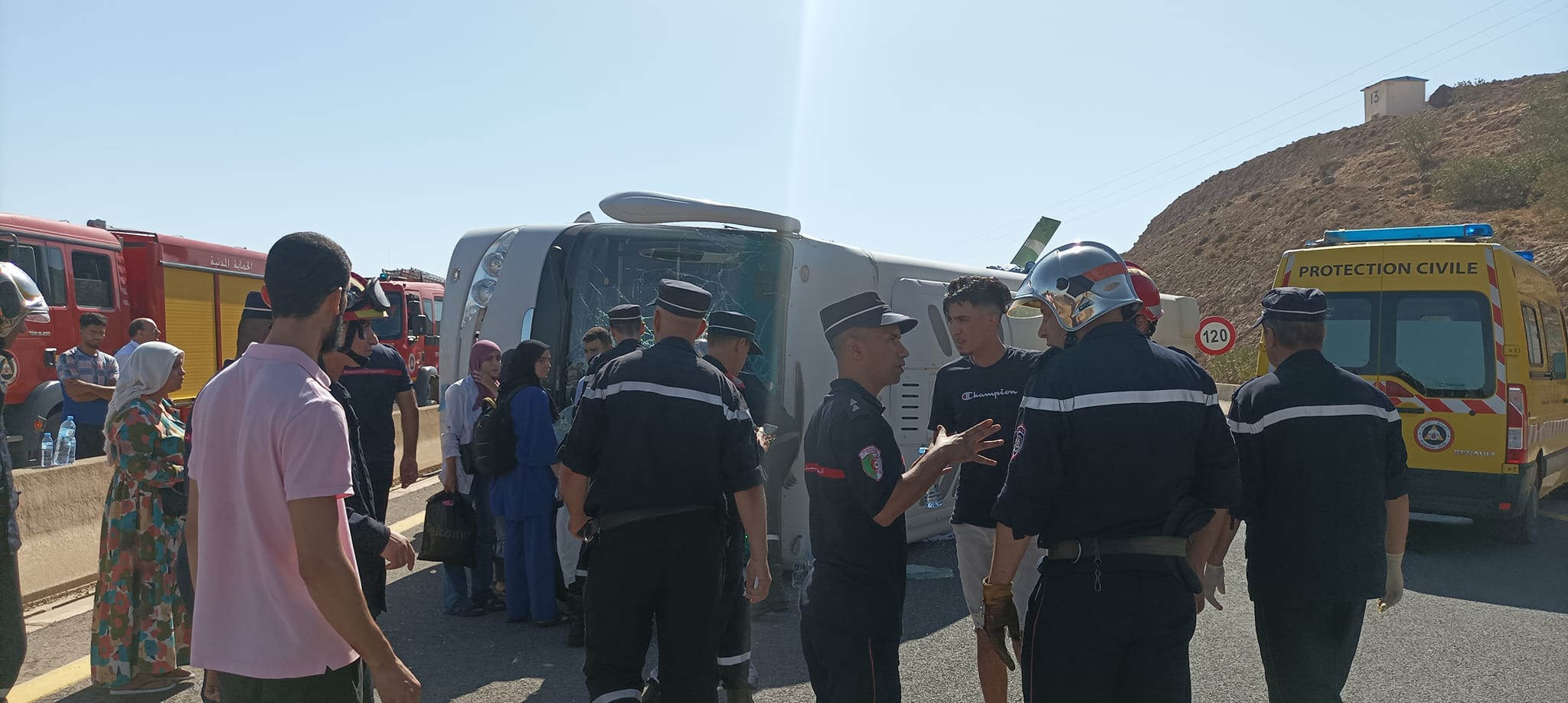 أصيب، صبيحة الأحد، 38 شخصا بجروح متفاوتة الخطورة إثر حادث مرور تمثل في انقلاب حافلة لنقل المسافرين بولاية تلمسان.