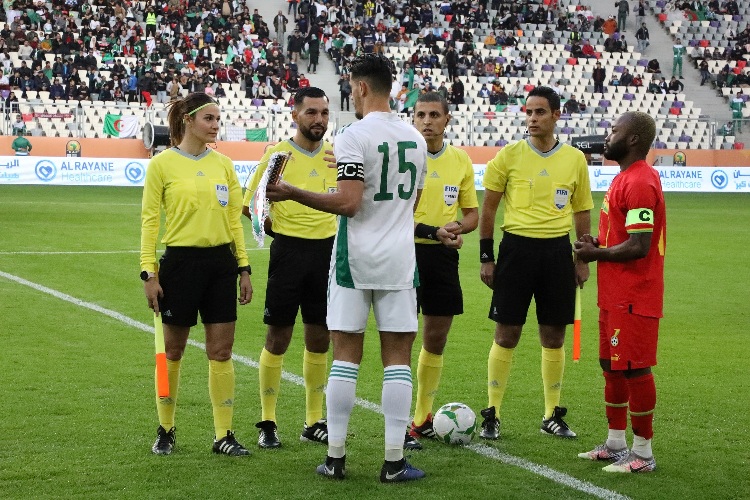 مشهد سبق انطلاقة مباراة محلّيي الجزائر وغانا.