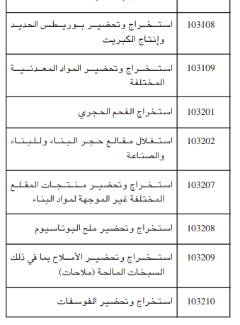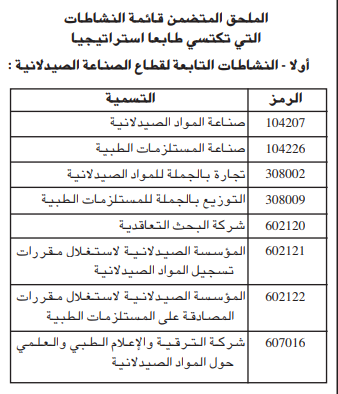 وتتمثل القطاعات التي شملها المرسوم في: النشاطات التابعة لقطاع الصناعة الصيدلانية، النشاطات التابعة لقطاع الطاقة والمناجم، النشاطات التابعة لقطاع النقل.