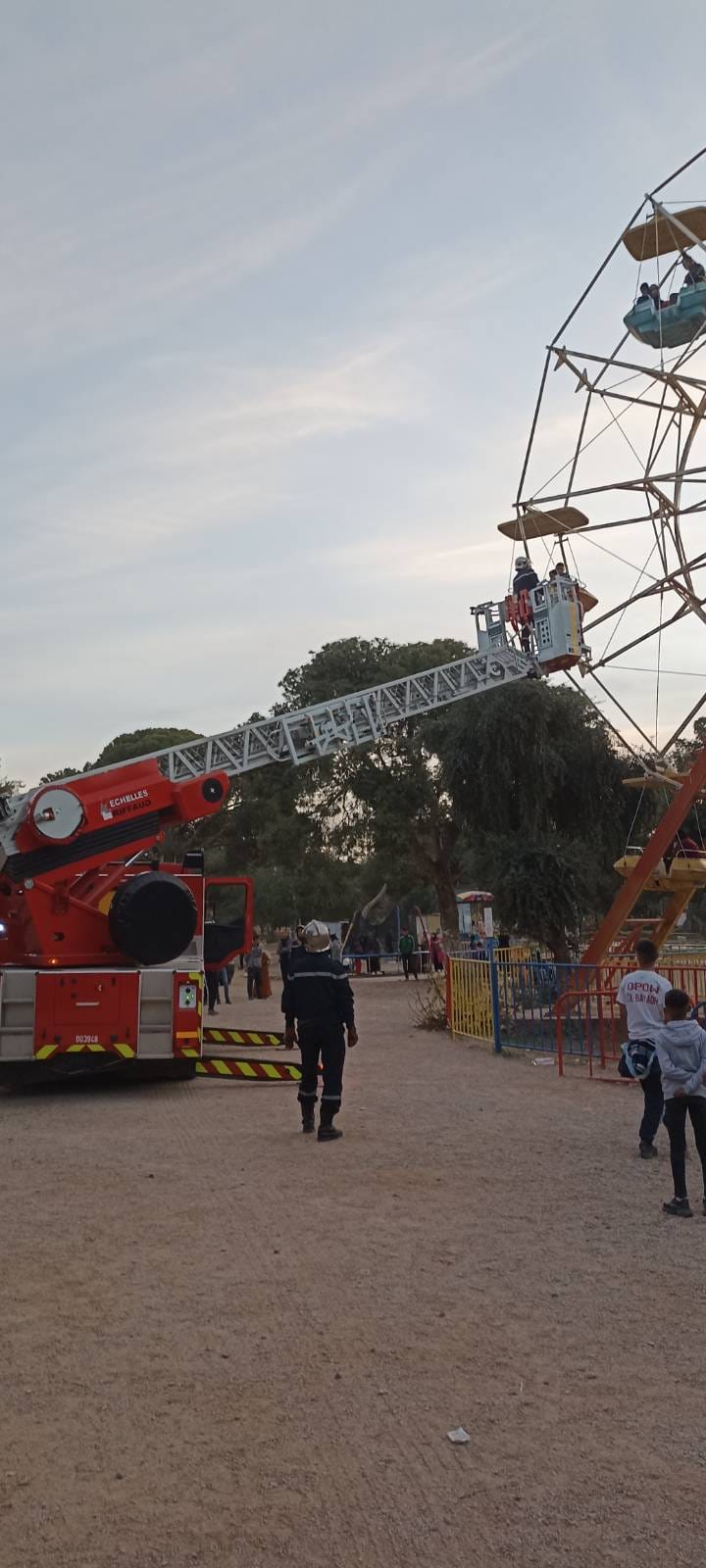 بالصور.. إنقاذ 22 شخصا علقوا في لعبة العجلة بحديقة التسلية في الشلف