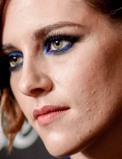 كذلك بالنسبة للنجمة كريستين ستيوارت التي تعاني من مشاكل البشرة كما هو واضح في الصور.