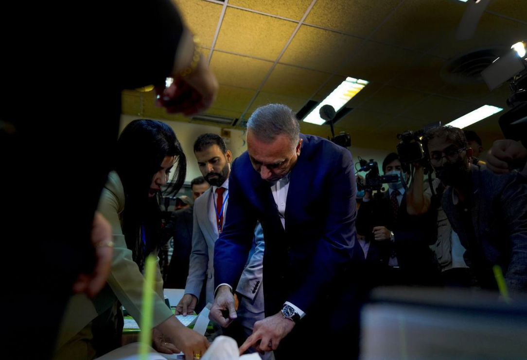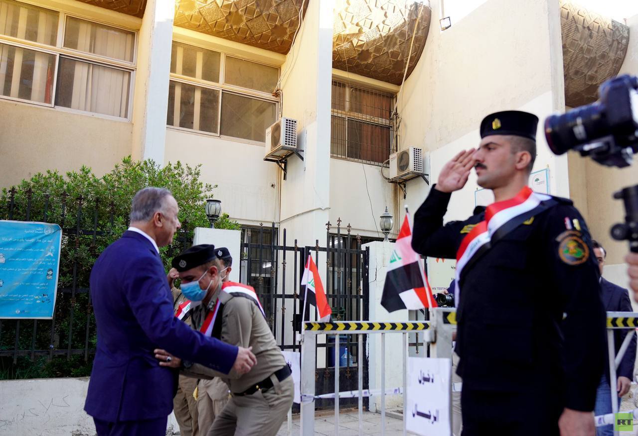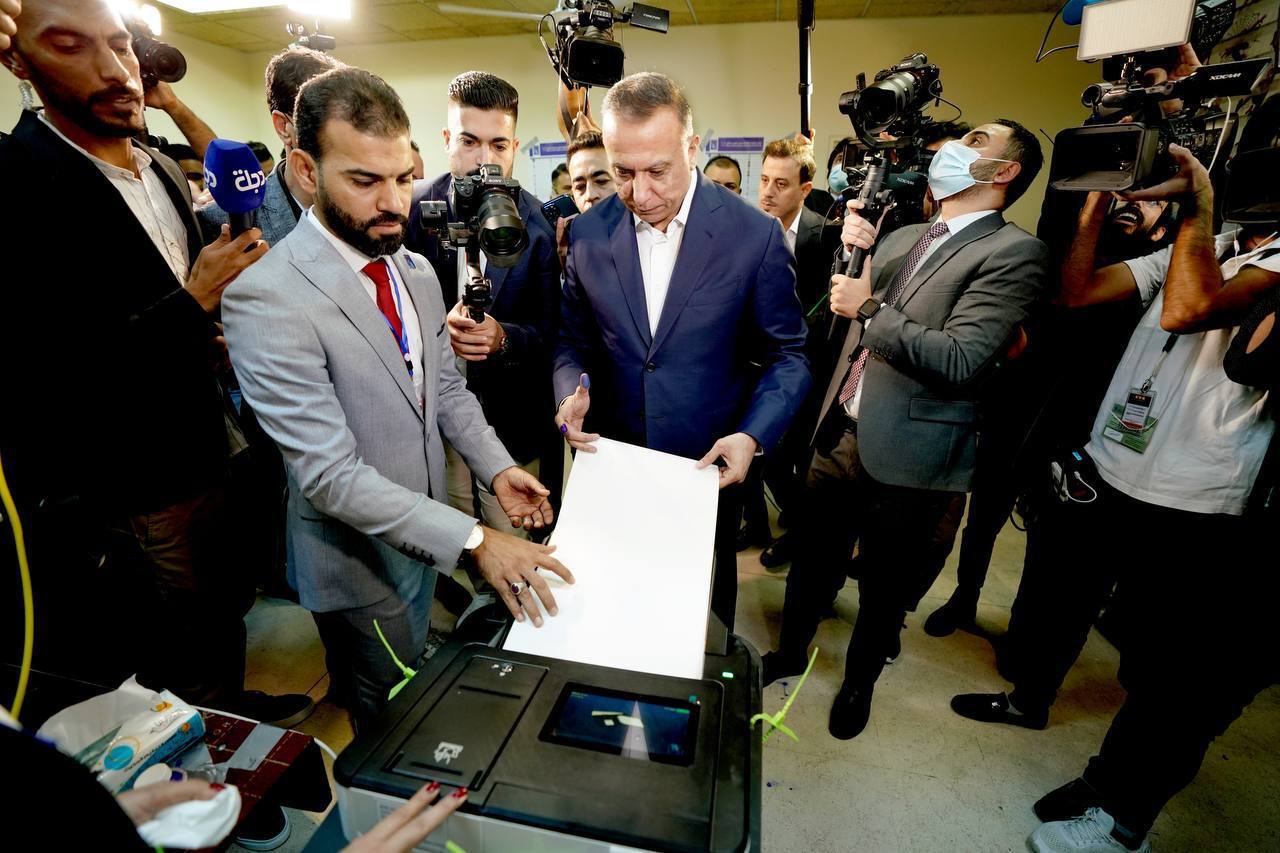 وقدم الكاظمي بسيارته الخاصة للإدلاء بصوته في أحد المراكز الانتخابية في العاصمة بغداد، كما خضع للتفتيش، ضمن خطة أمنية صارمة لحماية الانتخابات.