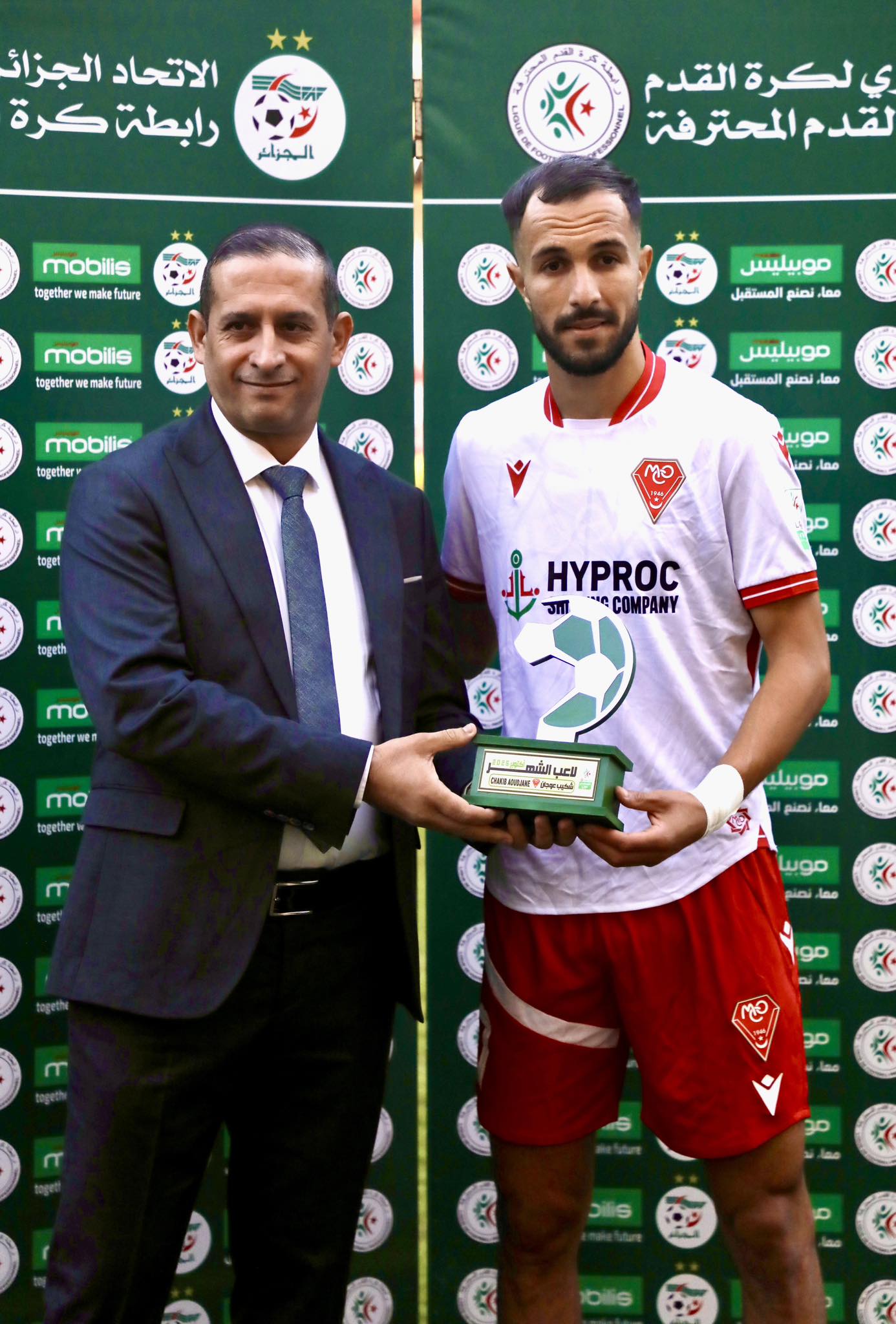 استلم لاعب مولودية وهران شكيب عوجان جائزة أفضل لاعب لشهر سبتمبر.
