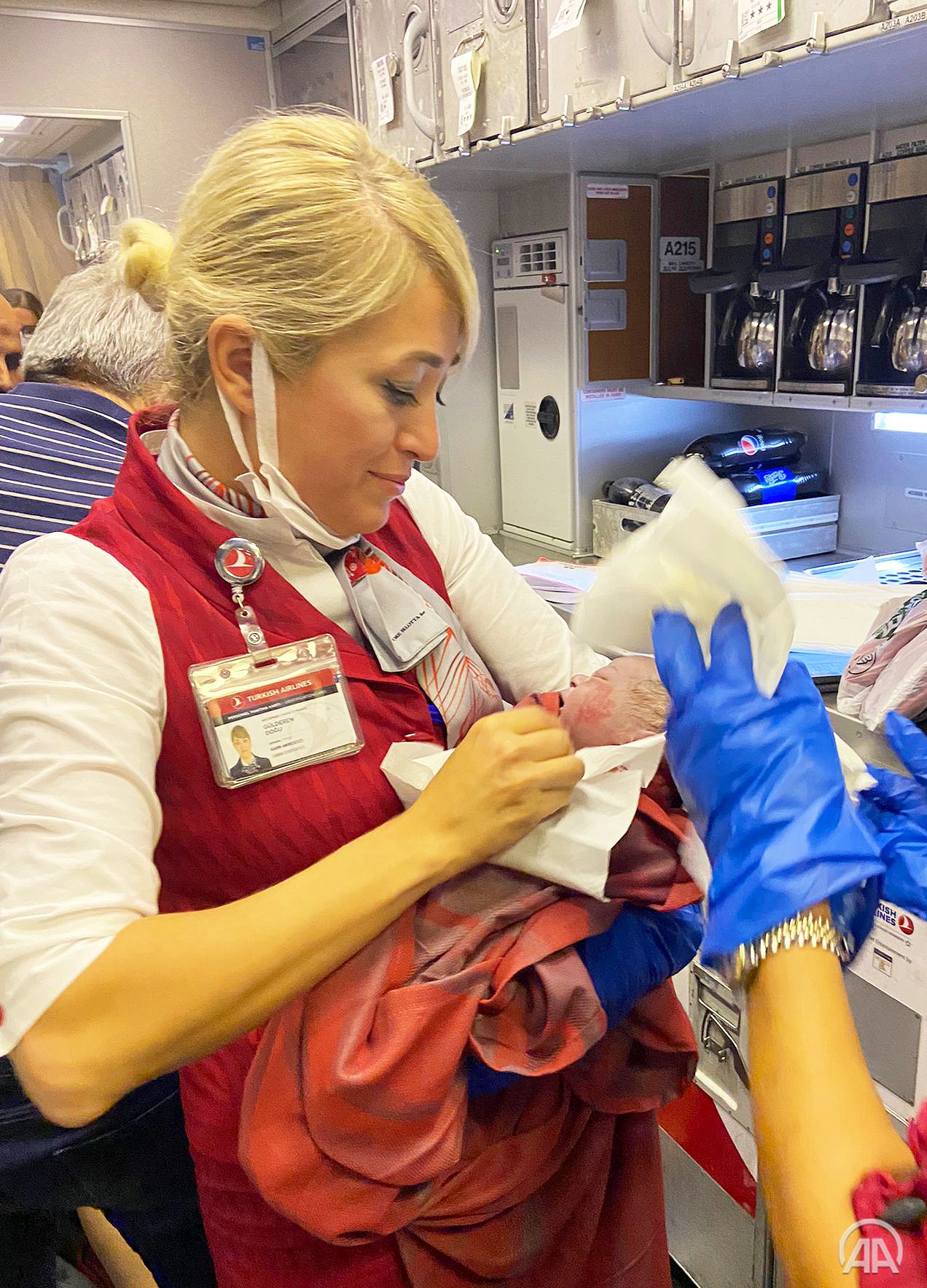 وبعد إتمام عملية الولادة، قامت مشرفة فريق الطائرة “غولديرين دوغو”، بقطع الحبل السري للمولود، الذي منحه والده اسم “المهدي”.