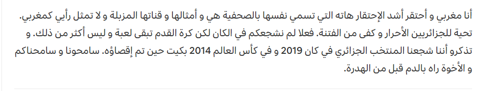 وكان نشطاء مغاربة، قد هاجموا “حمالة الحطب” التي عبرت عن فرحتها العارمة عقب خسارة المنتخب الجزائري أمام منتخب كوت ديفوار، وقصفوها بالثقيل بعد التداول الواسع لفيديو الشماتة.