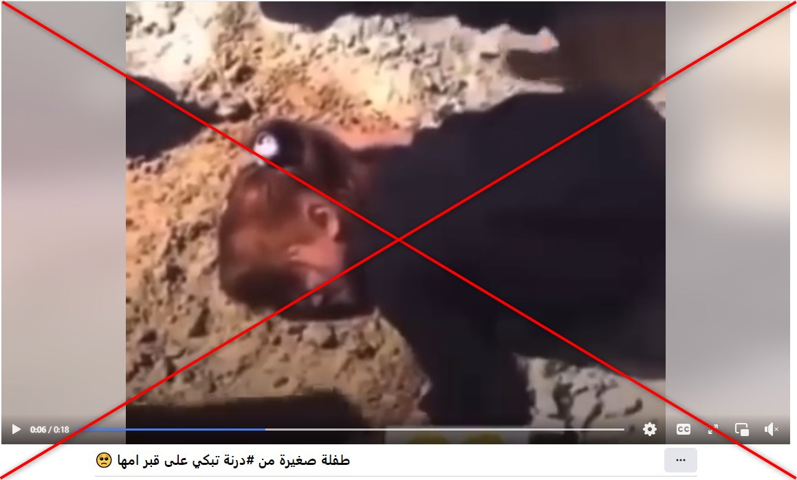يظهر في المقطع الذي أثار تعاطفا واسعا، طفلة تبكي بحرقة فوق قبر ترابي، ومعه تعليق: “طفلة صغيرة من درنة تبكي على قبر أمها”.