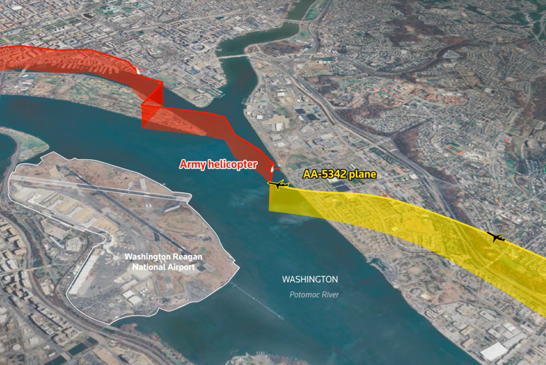 أفادت السلطات الأمريكية، اليوم الخميس، بأن العديد من الأشخاص قد لقوا حتفهم بعد تصادم طائرة ركاب تابعة لشركة “أمريكان إيرلاينز” وطائرة مروحية عسكرية من طراز “بلاك هوك” تابعة للجيش الأمريكي، ما أسفر عن تحطمهما في نهر بوتوماك بالقرب من مطار “ريغان” الوطني في العاصمة واشنطن مساء الأربعاء.
