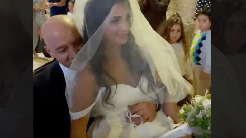 وظهرت العروس في الفيديو الذي نشرته عبر حسابها على إنستغرام وهي تجلس في حضن والدها على كرسيّ العجلات، معلقة: “سندي في جميع الظروف”.