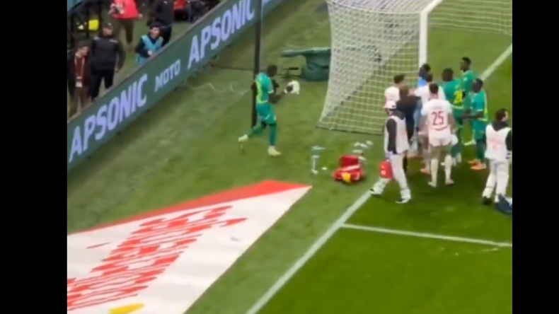وخلال اللقاء، رصدت الكاميرات، رمي لاعب المنتخب المغربي أشرف حكيمي لمنشفة حارس مرمى المنتخب السنغالي إدواردو ميندي، قبل أن يعيدها لاعب السنغال إلى مكانها بجانب القائم.