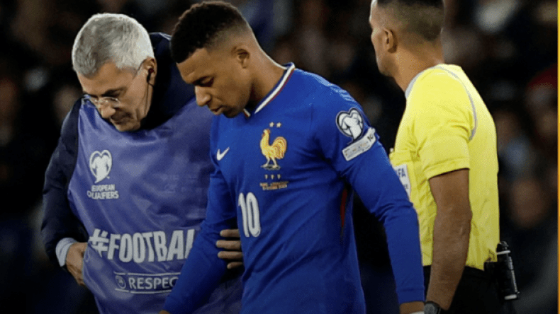 وأعلن المنتخب الفرنسي لكرة القدم، في الساعات الأولى من صباح السبت، أن كيليان مبابي نجم ريال مدريد، تعرض لإصابة جديدة في الكاحل الأيمن خلال مواجهة أذربيجان، وسيعود إلى مدريد، مما يعني غيابه عن رحلة فرنسا إلى أيسلندا.