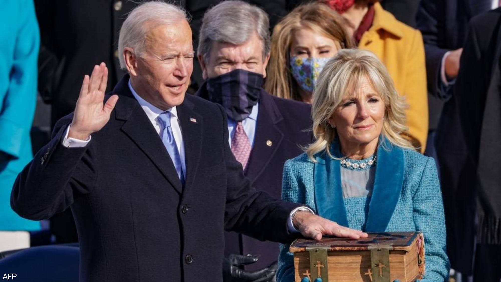 وفي حضور جمهور محدود، سيؤدي الرئيس المنتخب اليمين الدستورية أمام رئيس المحكمة العليا جون روبرتس بعد الثانية عشرة ظهراً بقليل (17:00 بتوقيت غرينتش)، واضعاً يده على إنجيل توارثته عائلة بايدن على مدى أكثر من 100 عام.