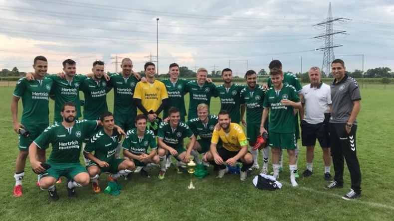 وتُظهر الصورة المُدرجة أعلاه المدرب كريم مطمور (أقصى اليمين) مع لاعبي فريقه كيهلر الألماني.
