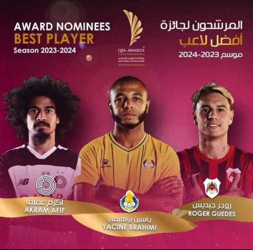 يتنافس اللاعب الدولي الجزائري ياسين براهيمي في مضمار جائزة أحسن لاعب، في الموسم الكروي القطري 2023-2024.