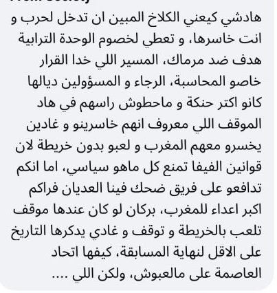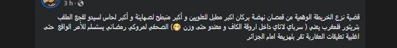 وعلّق أحدهم قائلا إن السلطات الرياضية المغربية روّجت لِنبأ إقالة الناخب الوطني وليد الركراكي، تغطية على هزيمتها المدوّية بِخصوص الخريطة الوهمية.