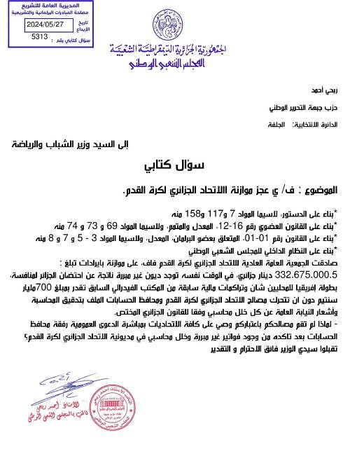برلماني يُسائل وزير الرياضة عن الديون الرّهيبة لـ “الفاف”