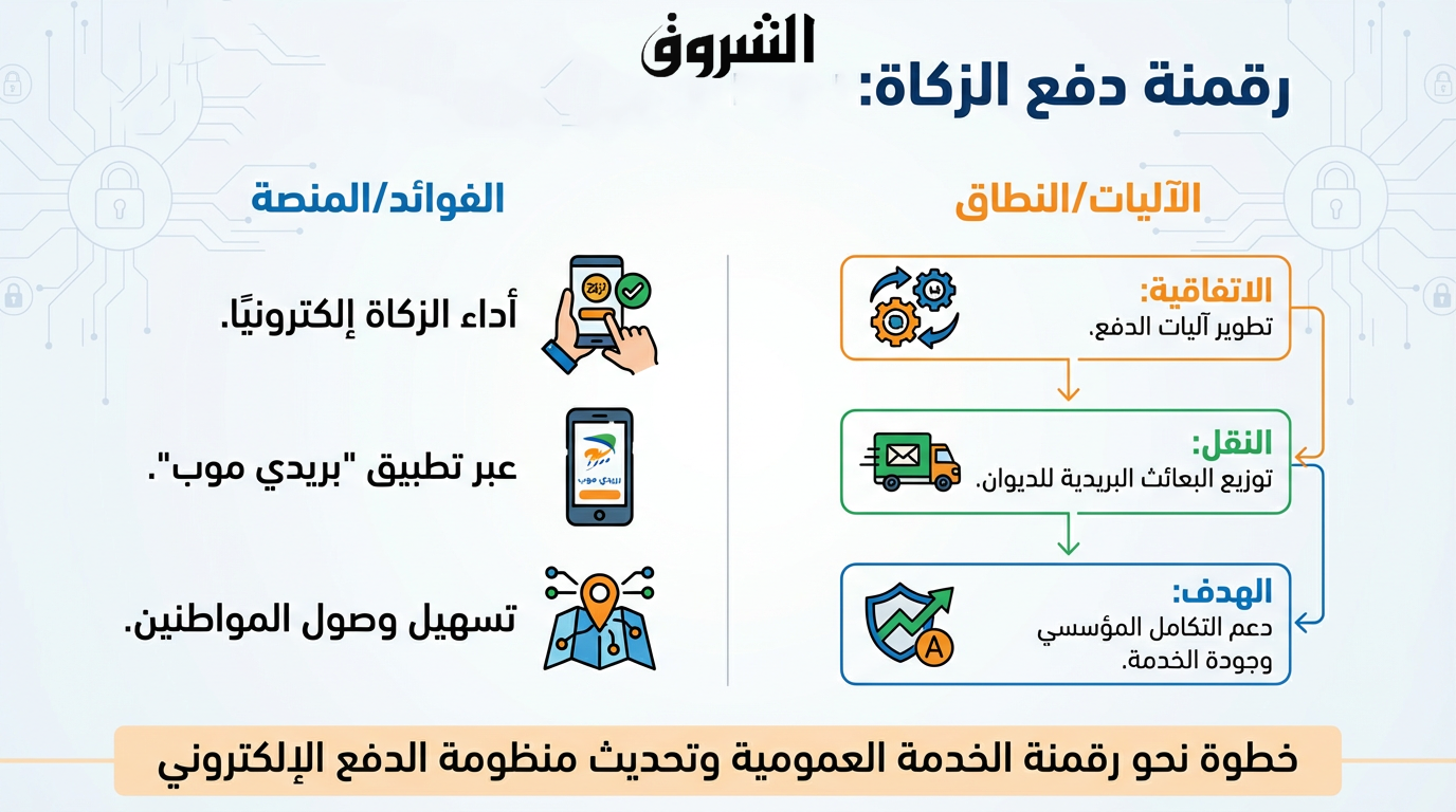 وبدأ الجانبان فعليًا في تعميم منظومة الدفع الإلكتروني الموجّهة للزكاة، من خلال تثبيت رموز الاستجابة السريعة (QR Codes) في الفضاءات العمومية والمنصات الرقمية التابعة للديوان، ما يتيح للمواطن أداء الزكاة بشكل فوري وآمن عبر تطبيق “بريدي موب” أو الدفع الإلكتروني عبر الموقع الرسمي للديوان، في خطوة تسهم في تبسيط الإجراءات وتحسين التحكم في قنوات إيداع الزكاة.