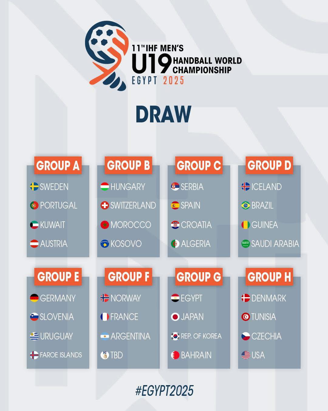 تعرّف المنتخب الجزائري لكرة اليد لأقل من 19 سنة، على منافسيه في بطولة العالم المقررة في مصر، في الفترة من 6 إلى 17 أوت المقبل.