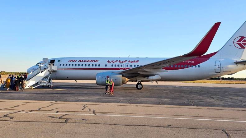 وكان في استقبال طائرة بوينغ (B733)، والتي تسع لـ148 راكبا، والي الولاية والسلطات المحلية.