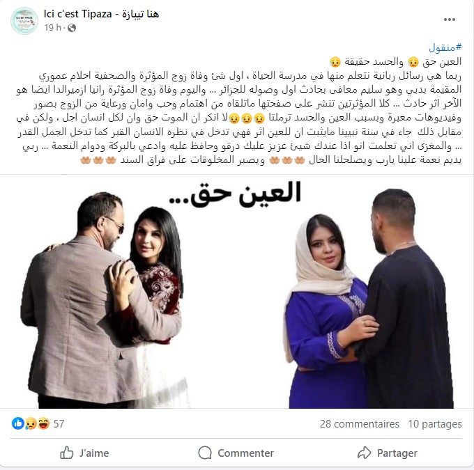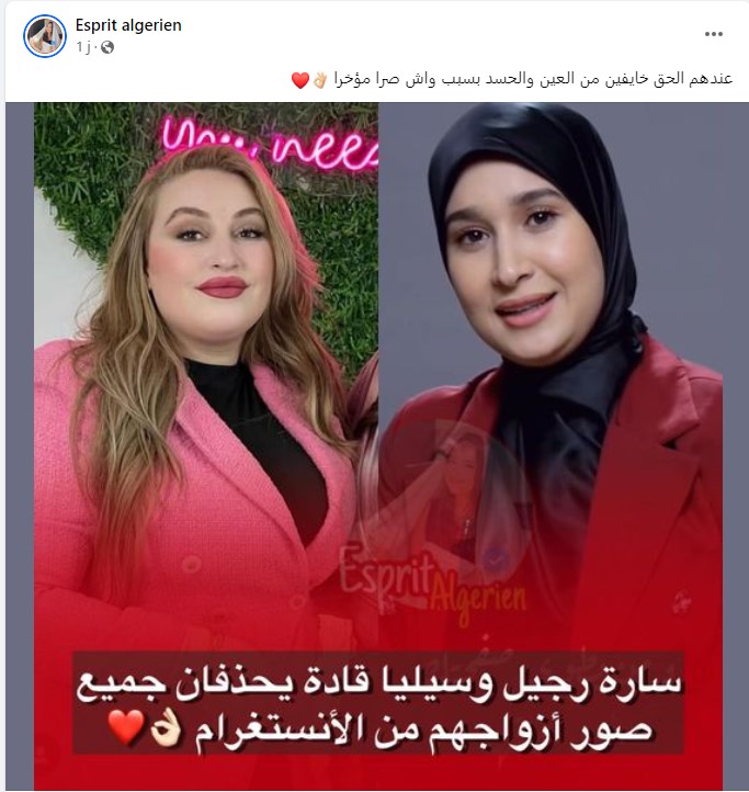 بعد طلاق مؤثرات ووفاة أزواج أخريات، لا حديث لشهيرات السوشيال ميديا الجزائريات، في الآونة الأخيرة، إلا عن العين، وما يمكن أن تسببه من أذى لمن ينشرن الخصوصيات.