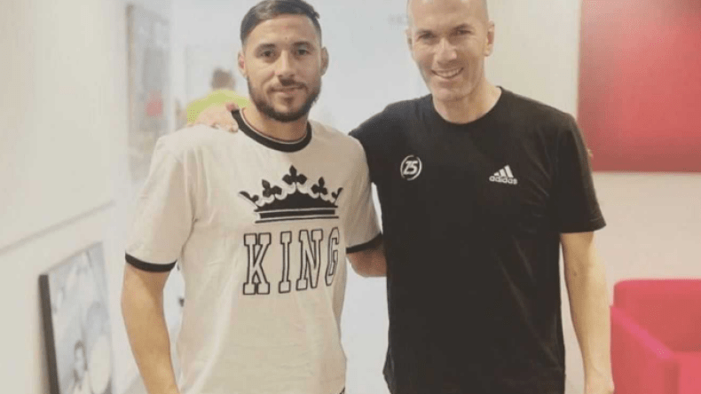قابل الدولي الجزائري يوسف بلايلي، أسطورة الكرة العالمية ذو الأصول الجزائرية زين الدين زيدان. وهذا بعد حضوره مقابلة برست أمام موناكو.
