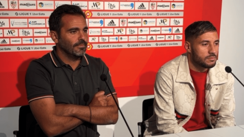يوسف بلايلي رفقة المدير الرياضي لِنادي أجاكسيو يوهان كافالي.