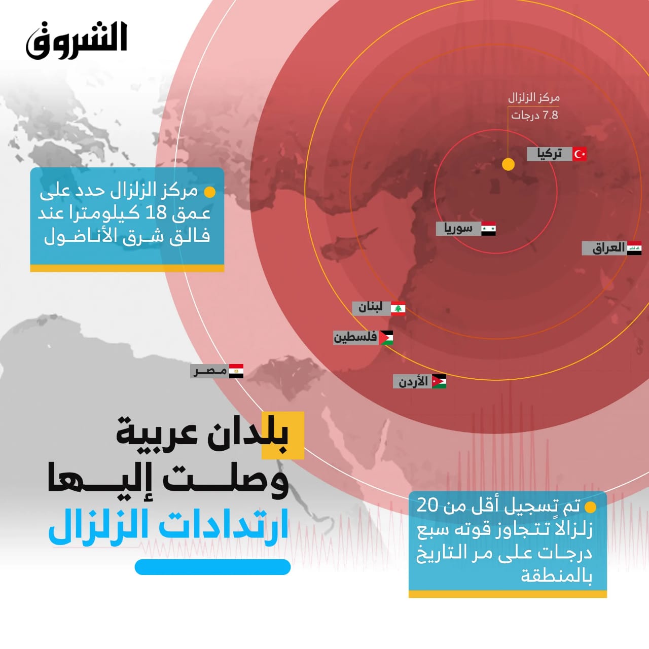 هذه هي البلدان العربية التي وصلت إليها ارتدادات الزلزال الذي ضرب المنطقة الواقعة بين تركيا وسوريا