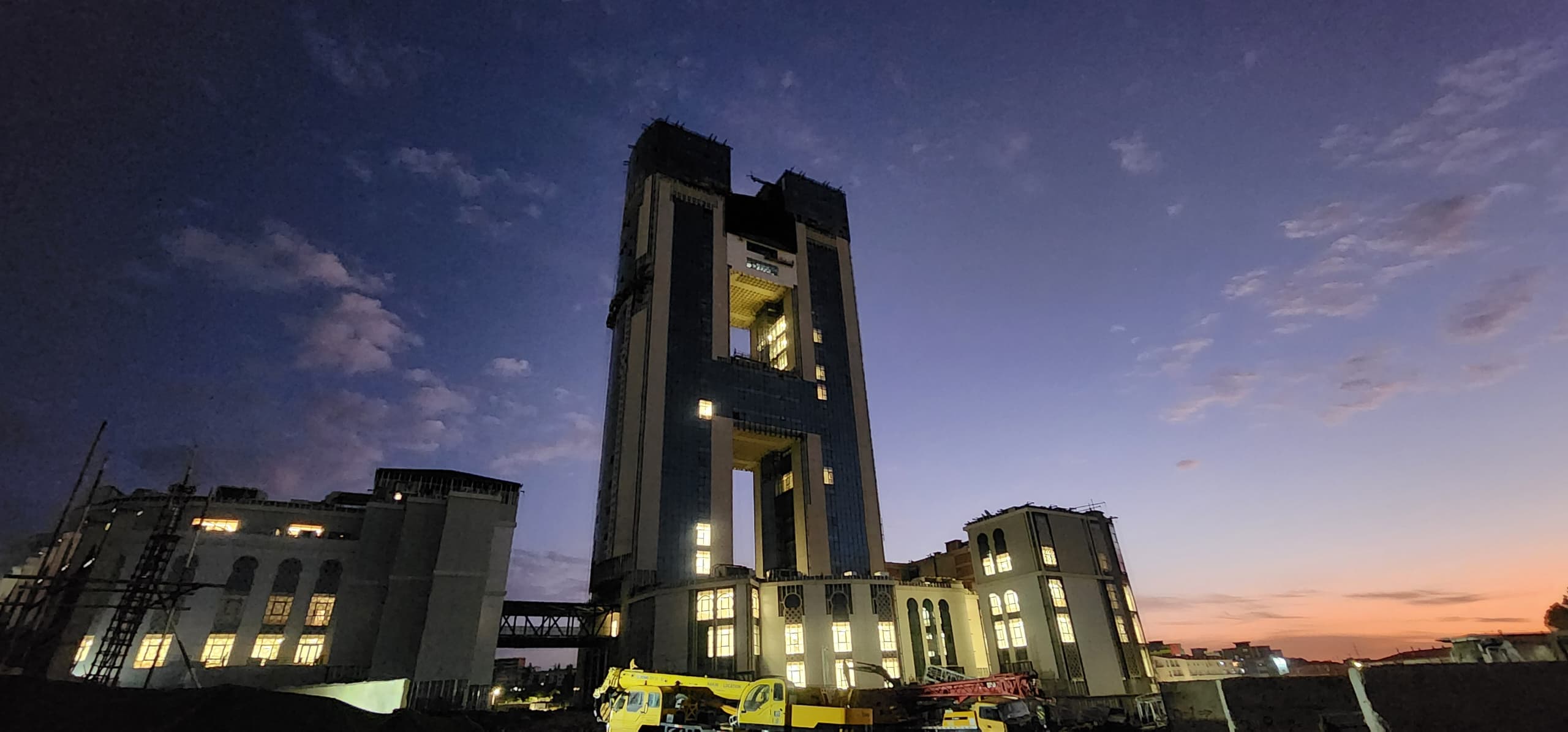 وحسب ذات البيان، انتقل الوزير الى الطوابق العلوية أين يتواجد المرصد والذي يعرف نسبة إنجاز حسنة.