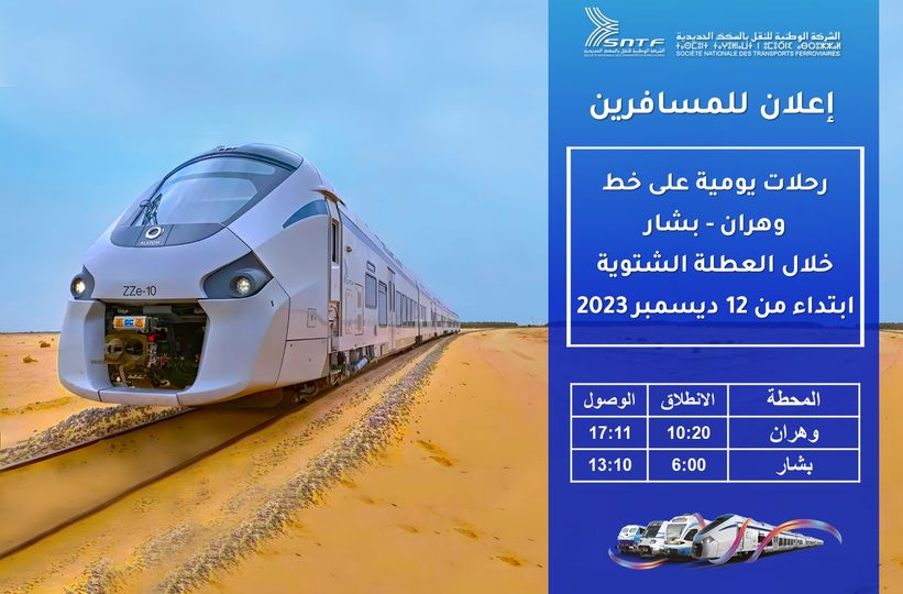 - الإنطلاق من وهران على الساعة 20: 10 والوصول إلى بشار على الساعة 11: 17.