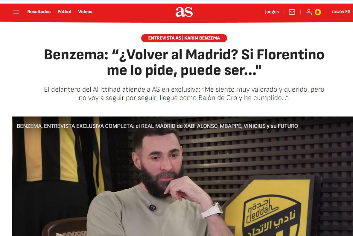 وقال بن زيمة في مقابلة خاصة مع صحيفة “آس” الإسبانية، متحدثا عن إمكانية عودته إلى النادي الملكي: ” لو كان فلورنتينو بيريز موجوداً… يمكن أن يحدث، ولو طلبني، يمكن أن يكون ذلك ممكناً”.