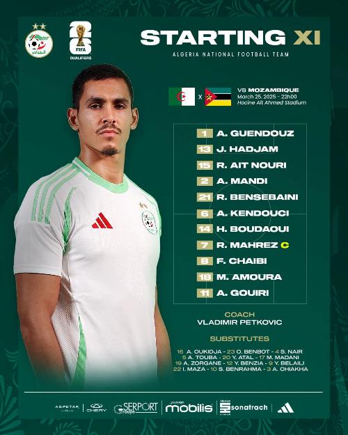 أماط اتحاد الكرة الجزائري مساء الثلاثاء اللّثام، عن قائمة المنتخب الوطني في مواجهة الضيف الموزمبيقي.
