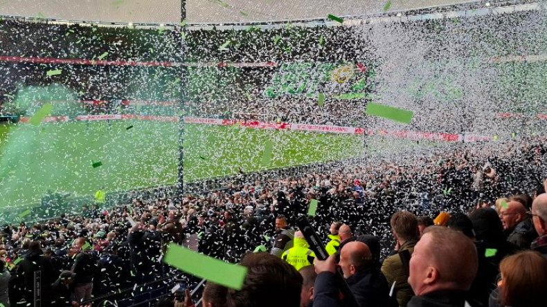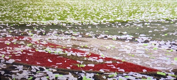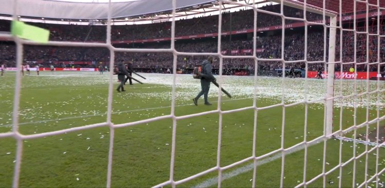 وتطلّب الأمر تدخّل إدارة الملعب لِكنس قصاصات الورق وتنظيف أرضية الميدان، قبل أن يأمر الحكم بإنطلاق المباراة.