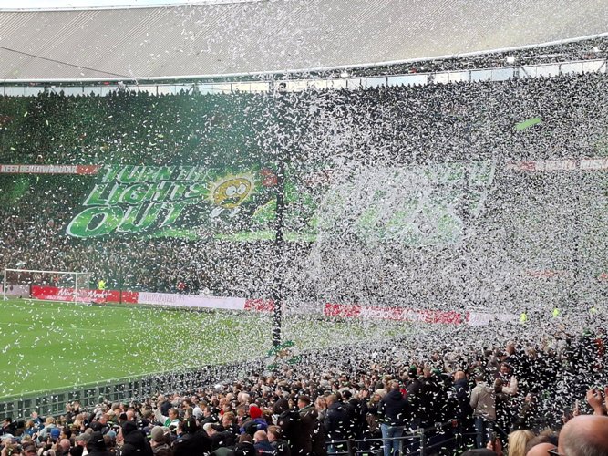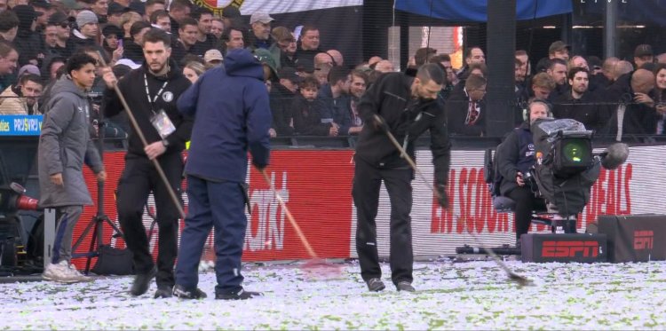 وكان يُفترض أن تنطلق هذه المباراة على الساعة الثانية والنصف بعد الظهر بِالتوقيت الجزائري، ولكن تأخّرت بِقرار من حكم الساحة وبِنحو ربع ساعة. وذلك بِسبب رمي مشجّعي فريق فينورد قصاصات ورق ملوّنة فوق أرضية الميدان، التي بدت وكأنها مغطاة بِالثلوج (الصور المدرجة).