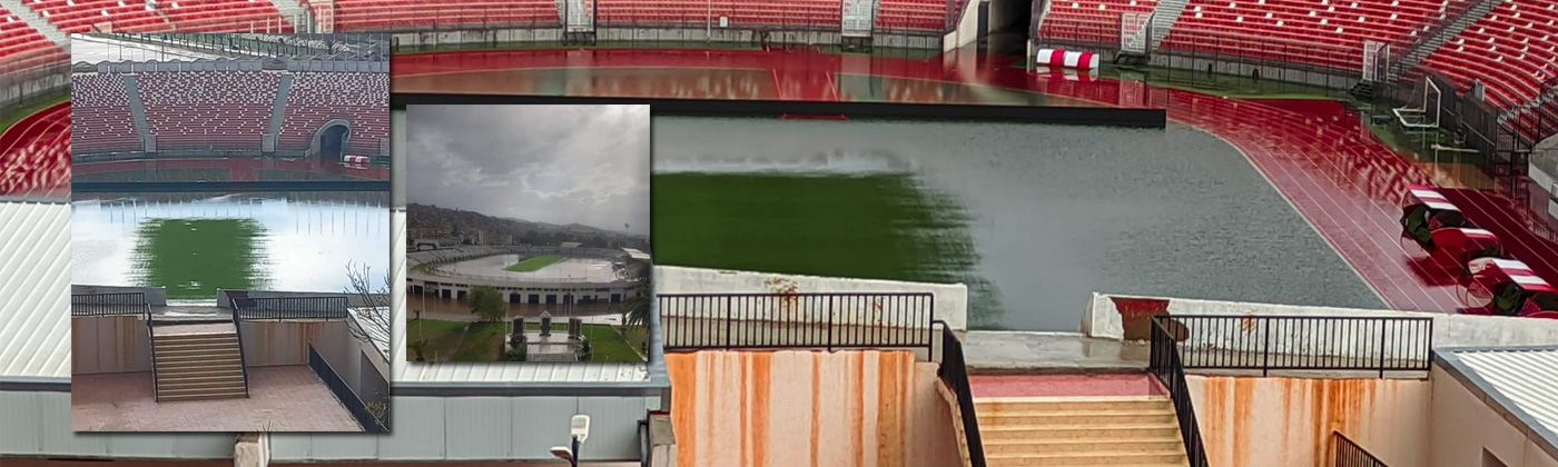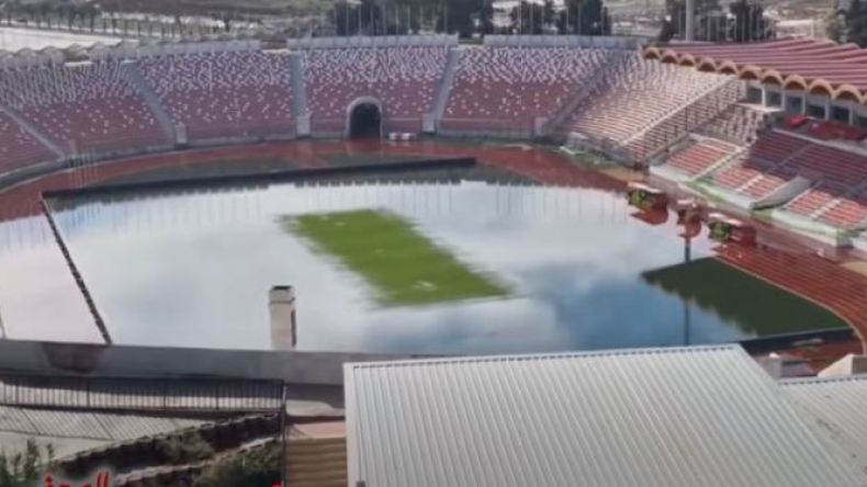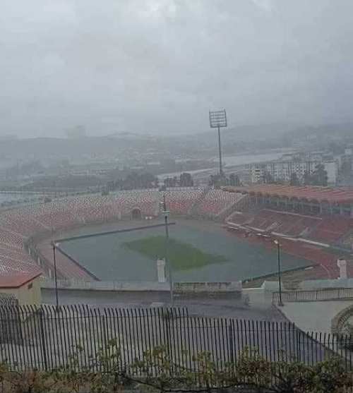 تحوّل ملعب “19 ماي 1956” بِعنابة إلى أشبه بِمسبح فسيح، بعد أن غمرت الأمطار أرضية الميدان.