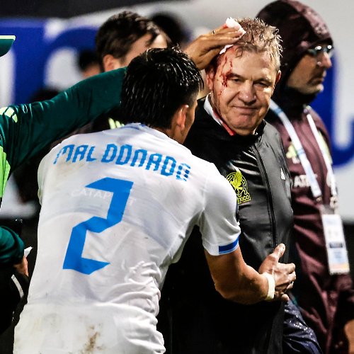 ورشقت جماهير منتخب الهندوراس التقني المكسيكي أغيري بِقنّينة خمر، فأدمت رأسه.