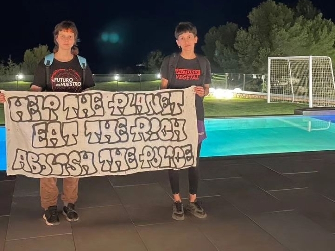 وأضافوا سببا آخر: “.. وبينما يحدث هذا، تُوفّي ما بين 2 إلى 4 أشخاص في جزر البليار وحدها نتيجة مباشرة لِموجة الحرّ. نسبة 1% من سكان الأرخبيل الأثرياء مسؤولون عن نفس كمية انبعاثات غاز الكربون التي يتحمّلها الثلثان الأفقر”.