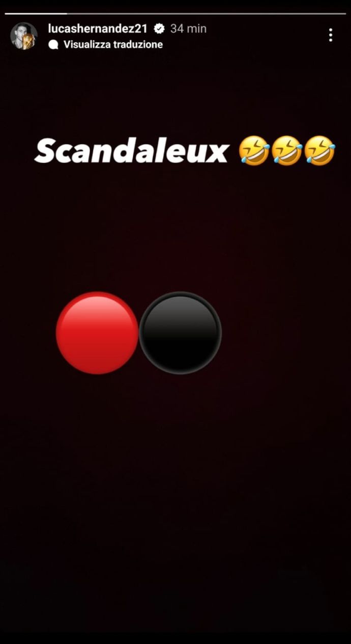 أمّا المدافع الدولي الفرنسي وبطل العالم لوكا هرنانديز الذي يرتدي زيّ فريق بايرن ميونيخ الألماني، فتدخّل بِدوره عبر موقع التواصل الاجتماعي “إنستغرام”، وكتب: “فضيحة!”، في إشارة إلى إلغاء الحكم لِهدف بن ناصر. عِلما أن لوكا هيرنانديز شقيق تيو هرنانديز لاعب الخط الخلفي للميلان.