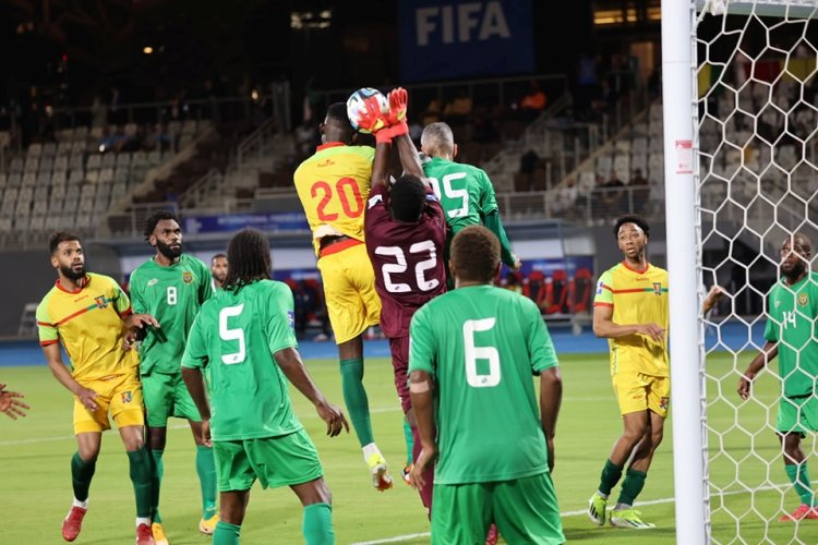لاعبو غينيا كوناكري بعد تسجيلهم أحد الأهداف في مرمى فانواتو.