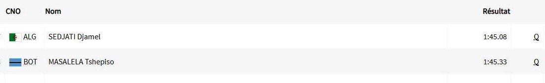 وبِالمُقابل، أُقصي العدّاء الجزائري الآخر محمد علي قواند، بعد أن تذيّل لائحة ترتيب الفوج الثاني في نصف نهائي سباق 800م. وذلك بِتوقيت قدره 1د و46ثا و52ج.