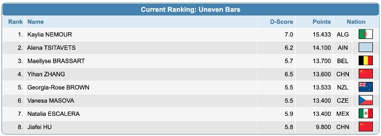 وحصدت كيليا نمّور 15433 نقطة متصدّرة لائحة الترتيب، وهو ما منحها امتياز الميدالية الذهبية في هذه المسابقة العالمية (الفيديو).