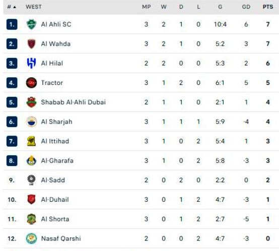 وتشكّل جدول ترتيب فوج غرب آسيا على النّحو التالي: