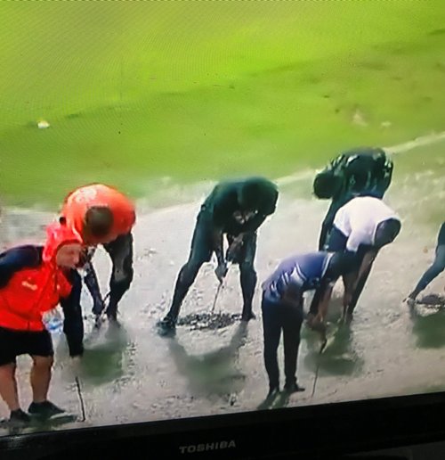ولجأ المُنظّمون الإيفواريون إلى طرق بدائية لِتجفيف أرضية الميدان، يعود تاريخها إلى مطلع النّصف الثاني من القرن الماضي، وبِالضّبط في بعض مقابلات كأس العالم 1974 بِألمانيا الفيدرالية، حيث ساءت الأحوال الجوّية (الفيديو).