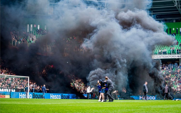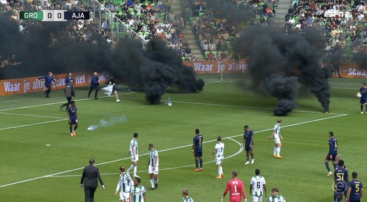 أوقف الحكم مباراة فريق أجاكس أمستردام ومُضيّفه نادي غرونينغن الهولنديَين بعد 10 دقائق فقط من انطلاقها، وذلك بِسبب الشغب.