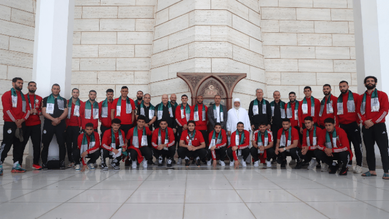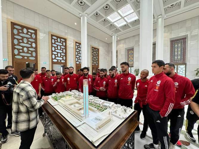 وبعد زيارة أعلى نقطة من المِئذنة (الأعلى في العالم بِارتفاع 265 متر)، توجّه لاعبو المنتخب الوطني إلى القاعة الكبرى للصلاة، لِأداء صلاة العصر بِرفقة مئات المصلّيين الحاضرين.