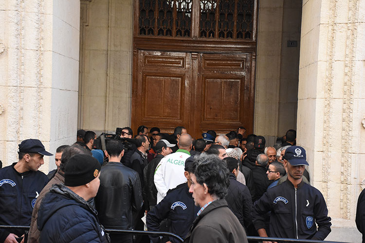 * علق أحد المواطنين بعد عدم السماح لهم بالدخول، بأنه كان يتوجب إجراء المحاكمة في ملعب 5 جويلية حتى يتمكن كل الشعب الجزائري من حضورها.