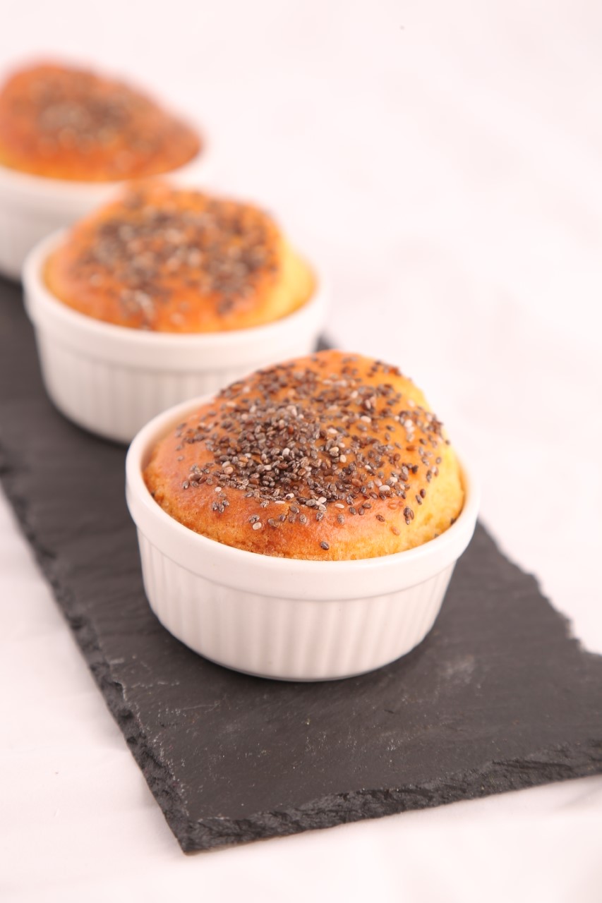 في مقلاة نسخن ملعقة الزيت ونقلي حبة البصل ونضيف الدجاج والملح والفلفل الأسود ونحرك، عندما ينضج الدجاج نتركه على جنب، وفي وعاء نخفق البيض ثم نضيف له الزبدة والحليب والجبن الأبيض والملح والفلفل الأسود، ثم نضيف الفرينة والخميرة الكيميائية ونخلط جميع المقادير جيدا حتى نتحصل على خليط متجانس، ثم نأخذ القوالب وندهنها بالزبدة ونرشها بالفرينة ونضع فيها الدجاج ونسكب فوقها الخليط ونزين من فوق ببذور الشيا وندخلها الفرن على درجة حرارة 180 ° ونتركها تنضج (أنظري الصورة).