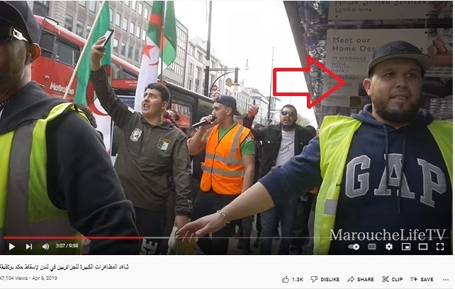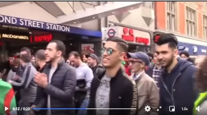 وبعد التثبّت من أن الفيديو مصوّر في بريطانيا وليس في سويسرا، أرشد التفتيش على موقع يوتيوب باستخدام كلمات (مظاهرات- لندن- الجزائر) إلى فيديوهات مشابهة منشورة عام 2019، وهي تُصوّر تظاهرات لجزائريين في بريطانيا في إطار الحراك الشعبي ضد العهدة الخامسة.